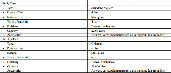 • Ketahanan Tekanan (Pressure Test 6 Bar): Karena volumenya yang besar, tangki ini harus melewati uji tekan yang lebih tinggi (6 Bar) dibandingkan tangki harian (4 Bar) untuk memastikan tidak ada kebocoran pada sambungan las pelat baja setebal 6 mm.