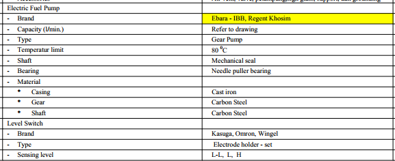 Bahan bakar solar memiliki viskositas tertentu yang membutuhkan jenis pompa khusus. Dalam spesifikasi ini, dipilih tipe Gear Pump.